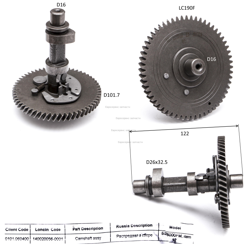 ЗАПЧАСТИ ДЛЯ ДВИГАТЕЛЯ LC190FDS (ВАЛ РАСПРЕДЕЛИТЕЛЬНЫЙ, КЛАПАНА)